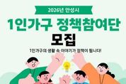 [경기뉴스원/경기뉴스1] | 안성시는 1인가구 시민의 생활 속 이야기와 의견을 정책에 담기 위해 '2026년 안성시 1인가구 정책참여단'을 오는 2월 27일까지 공개 모집한다고 밝혔다. 정책참여단은 1인가구의 일상에서 느끼는 고민과 생생한 의견을 공유하고, 수렴된 의견을 정책 검토 과정에 반영하기 위해 운영된다. 모집 인원은 총 10명으로, 1인가구 정책에 관심 있는 19세 이상의 안성시민 또는 안성시에 생활 기반을 둔 사람이라면 누구나 신청할 수 있다. 특히 현재 1인가구로 생활하고 있는 시민을 우선 선발해, 당사자의 경험과 목소리가 정책에 보다 충분히 반영될 수 있도록 할 계획이다. 선정된 정책참여단은 2026년 3월부터 2027년 12월까지 약 2년간 활동하며, ▲1인가구 정책 관련 의견 제시 ▲1인가구 지원 시책 홍보활동 ▲역량강화교육 등에 참여하게 된다. 안성시 관계자는 “1인가구 정책은 시민의 삶에서 출발해야 한다”며 “정책참여단 운영을 통해 1인가구 시민의 다양한 의견을 직접 듣고, 실효성 있는 정책으로 이어가겠다”고 말했다.