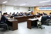 [경기뉴스원/경기뉴스1] | 청양군의회는 13일 제315회 임시회를 앞두고 의원 및 부서장이 참석한 가운데 의원 정책간담회를 개최했다. 간담회에서는 ▲청양군 공모사업 관리 조례안(기획감사실) ▲3~4월 이상저온 과수피해 재난지원금 성립전 예산 편성(농정축산실) ▲청양일반산업단지 투자협약(MOU) 안(투자유치과) ▲청양군 면암최익현기념관 관리 및 운영 조례안(문화체육과) ▲청양군 슬레이트 처리지원 국고보조사업 민간위탁 동의(안)(도시건축과) 등 총 26건(조례 16건, 기타 10건)의 안건에 대하여 다양한 의견을 나누었다. 이번 간담회 의원발의 안건에 내용으로는 ▲청양군 중증장애인 자립생활 지원 조례안(이경우 의원) ▲청양군 신장장애인 지원 조례안(차미숙 의원) ▲청양군 군계획 조례 일부개정조례안(임상기 의원) ▲청양군 자율방범대 지원에 관한 조례 일부개정조례안(이봉규 의원)이 논의됐다. 특히 청양군의회 의원 전원이 공동 발의한 ▲청양군 기본소득 지원에 관한 조례안은 군민들의 생활 안정과 복지 증진, 나아가 지역 경제 활성화에 크게 기여할 것으로 기대를 모았다. 이날 간담회는 안건에 대한 상세한 보고
