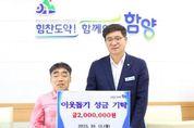[경기뉴스원/경기뉴스1] | 함양군은 13일 이병석 사무장(성창기 법무사사무소)이 함양군청을 방문해 취약계층에 전달해 달라며 성금 200만 원을 기탁했다고 밝혔다. 이날 기탁식에 참석한 이병석 사무장은 “이번 기탁이 소외된 이웃들에게 조금이나마 도움이 됐으면 한다”라고 전했다. 이에 진병영 군수는 “작년에 이어 올해도 어려운 이웃들을 위해 성금을 기탁해 주신 이병석 사무장님께 감사드린다.”라며 “소외되는 이웃이 없도록 세심하게 살피며, 필요한 분들에게 잘 전달될 수 있도록 최선을 다하겠다.”라고 밝혔다. 이날 기탁된 성금은 경남사회복지공동모금회를 통해 각 읍·면의 어려운 세대에 전달될 예정이다.