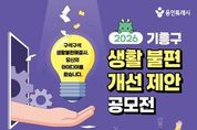 [경기뉴스원/경기뉴스1] | 용인특례시 기흥구는 오는 6일부터 5월 4일까지 ‘2026 기흥구 생활불편개선 제안 공모전’을 개최한다. 이번 공모전은 일상에서 시민이 직접 체감하는 불편사항을 발굴하고, 이를 개선할 수 있는 다양한 방안을 모색하고자 마련됐다. 주제는 일상생활에서 체감하는 생활 불편 개선 아이디어다. 시설·환경 등 각종 생활 불편 사항이나 비효율적인 행정이나 규제 등 다양한 분야의 의견을 받는다. 생활 불편에 관심 있는 누구나 참여할 수 있다. 시 누리집 ‘용인소식’의 ‘고시공고’ 또는 기흥구 누리집 ‘참여광장’의 ‘기흥소식’에서 서식을 내려받아 작성하면 된다. 작성한 제안은 방문‧우편(기흥구 관곡로 95 기흥구청 별관 2층 자치행정과 기획감사팀)으로 내면 된다. 전자우편으로도 제출할 수 있다. 부서 검토와 제안공모심사위원회 검토를 거쳐 최종 선정된 제안은 시상금(최대 100만 원)이 지급된다. 또 관련 부서 검토 등을 거쳐 행정에 반영하거나 실효성 있는 정책으로 이어질 수 있도록 추진할 방침이다. 자세한 사항은 시 또는 구 누리집에서