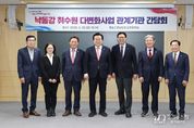 [경기뉴스원/경기뉴스1] | 부산시는 어제(20일) 오후 4시 경상남도청 도정회의실에서 개최된 '낙동강 취수원 다변화사업 관계기관 간담회'에서 물 문제 해결을 위한 의미있는 논의를 진행했다고 밝혔다. 간담회에는 박형준 부산시장, 박완수 경상남도지사, 박상웅 국회의원, 의령군수, 창녕군수, 기후에너지환경부 물이용정책관, 창녕군 반대대책위원장 등 총 7명이 참석하여 사업 전반과 주민 우려사항을 심도 있게 논의했다. 또한 합천군을 비롯해 수혜 지역인 창원시·양산시·함안시·김해시 부단체장이 배석하는 등 관련 지자체가 모두 함께해 자리를 더욱 뜻깊게 했다. 이번 간담회는 ▲[기후에너지환경부] 낙동강 취수원 다변화사업 추진상황 보고 ▲[부산시] 취수지역 상생협력방안 보고 ▲[토론] 질의응답 및 기관별 입장 공유 순으로 진행됐다. 기후부는 낙동강 취수원 다변화사업 추진상황을 그동안 반대대책위원회가 제시한 주요질의에 대한 응답 형식으로, ▲지점별 취수계획 ▲지하수위 영향범위 ▲지하수위 감소 대책 ▲손실보상 방안 등을 설명했다. 부산시는 ▲부산-창녕 상생발전기금 조성 ▲창녕군 출신 학생 장학금·기숙사