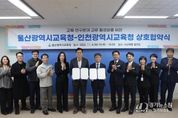 [경기뉴스원/경기뉴스1] | 울산광역시교육청과 인천광역시교육청이 4일 오후 4시 울산교육청 접견실에서 교육·연구 분야 교류 활성화를 내용으로 하는 업무협약을 했다. 이번 협약은 두 교육청이 상호 신뢰와 협력을 바탕으로 독서·인문교육과 연구 분야 발전을 도모하고, 지역 문제 해결과 사회 공헌을 위한 공동 프로그램 개발을 함께 추진하고자 마련됐다. 두 교육청은 이번 협약으로 교육·연구 분야 교류 활성화를 위한 다양한 프로그램을 공동 운영하고, 상호 연계로 교육 발전을 꾀한다는 방침이다. 또한 지역사회의 문제해결과 공공 가치를 실현하는 사회 공헌 프로그램을 공동 개발하고 운영하는 데 협력하기로 했다. 특히, 울산광역시교육청의 대표 독서인문교육 프로그램 ‘책크인’ 과 인천광역시교육청의 대표 독서교육 프로그램 ‘읽걷쓰’를 연계해 두 기관의 우수 교육 자료(콘텐츠)를 상호 공유하고 발전시킬 계획이다. ‘책크인’은 ‘책으로 크는 우리 아이’와 ‘독서의 세계로 체크인(check-in)한다’는 의미를 담아 학생의 성장과 독서 문화 확산을 목표로 한다. ‘읽걷쓰’는 읽기(문해력), 걷기(기초