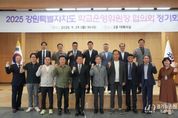 [경기뉴스원/경기뉴스1] | 강원특별자치도교육청은 9월 29일 오전 10시 강원특별자치도교육청 대회의실에서 ‘2025년 강원특별자치도 학교운영위원장 협의회(정기회)’를 개최했다. 이날 협의회에는 시·군 학교운영위원장 협의회장과 강원특별자치도교육청 담당자 등 20여 명이 참석했으며, 신임 회장을 비롯한 임원 3명을 선출한 후 각종 교육 현안에 대한 심도 있는 협의가 이루어졌다. 2025년도 협의회 회장에는 김흥진 속초지역협의회장, 부회장에는 △탁원빈 춘천지역협의회장 △우민구 양구지역협의회장이 선출됐다. 한편, 협의회에서는 △학교운영위원장 연수 개최안 △학교운영위원장 협의회 운영안 △그밖에 교육 현안의 추진 상황 및 문제점에 대해 논의하고, 해결 방안을 모색했다. 신경호 교육감은 “학교운영위원장 협의회가 지역 교육의 중심에서 활발히 소통하며 내일이 더 기대되는 강원교육을 만들어 나갈 수 있기를 기대한다”라며, “앞으로도 강원특별자치도 학교운영위원장 협의회의 적극적인 지원과 관심을 부탁한다”라고 말했다.