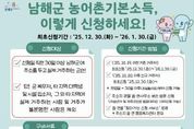 [경기뉴스원/경기뉴스1] | 남해군은 ‘농어촌 기본소득 시범사업’ 신청 접수를 오는 12월 30일부터 2026년 1월 30일까지 실시한다고 밝혔다. 농어촌 기본소득 시범사업은 남해군에 주민등록을 두고 실제 거주하는 군민을 대상으로 하며, 대상자로 확정될 경우 월 15만 원을 지역사랑상품권(카드형·선불카드)으로 지급하는 사업이다. 신청 대상은 신청일 기준 30일 이상 남해군에 주소를 두고 실제 거주 중인 주민으로, 군 복무자, 타 지역 대학생, 시설 입소자 등 실제 거주가 불분명한 경우는 제외된다. 신청은 주소지 관할 읍·면 행정복지센터 총무팀을 방문해 본인이 직접 신청해야 하며, 신분증을 반드시 지참해야 한다. 미성년자나 피후견인의 경우에는 법정대리인을 통한 대리 신청이 가능하며, 이 경우 대리인 신분증과 가족관계증명서 등 관계를 확인할 수 있는 서류를 제출해야 한다. 거주 시기에 따라 신청 요건도 달라진다. 2025년 10월 19일 이전부터 거주한 기존 주민은 최초 접수 기간 내 신청이 가능하며, 2025년 10월 20일 이후 전입한 신규 거주자는 전입일로부터 30일이 경과한 이후 신청할 수 있다. 신규 전입