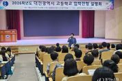 [경기뉴스원/경기뉴스1] | 대전시교육청은 9월 8일부터 9일까지 대전교육과학연구원 대강당에서 교원 및 학부모를 대상으로 '2026학년도 고등학교 입학전형 설명회'를 개최한다고 밝혔다. 이번 설명회 일정은 교원과 학부모를 대상으로 나뉘어 진행된다. 교원 대상 설명회는 9월 8일 오후 2시부터 열리며, 중학교 교감과 3학년 부장교사, 업무담당교사 등 학교당 3명씩 총 270명이 참석한다. 이어 9월 9일 같은 시각에는 학부모 대상 설명회가 개최되며, 대전 관내 중학교 3학년 학부모 교당 3명 내외로 구성된 약 270명이 참여할 예정이다. 주요 내용으로는 대전시교육청 교육정책과 교육과정 담당 장학사의 고등학교 교육과정 이해 특강을 시작으로, 중등교육과 고입 담당 장학사의 2026학년도 입학전형 기본계획과 사회통합전형 안내, 일반고와 자율형 공립고 입학전형 요강, 과학직업정보과 특성화고 입학전형 담당 장학사의 마이스터고 및 특성화고 전형 안내가 차례로 이어진다. 또한, 대전외국어고, 대성고, 대신고의 입학담당관이 직접 학교별 입학전형 요강을 소개하고, 마지막으로 질의응답 시간이 마련되어 참석자들의 궁금증을 해소할 계