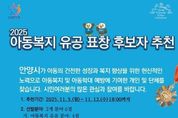 [경기뉴스원/경기뉴스1] | 안양시는 오는 12일까지 아동의 건전한 성장과 복지 향상에 헌신한 시민과 단체를 발굴 및 격려하고자 ‘아동복지 유공 표창’ 후보자를 추천받는다고 5일 밝혔다. 표창 분야 및 규모는 ▲아동복지 유공 분야 4점 ▲아동학대 예방 유공 분야 2점으로 총 6점이다. 대상자격은 안양시민, 사회복지사, 단체 등으로 아동학대 예방, 아동보호, 아동권리 증진 및 아동복지 향상 등에 기여한 자이고 해당 분야에 공고일 기준 1년 이상 직접 참여해 현저한 공적이 있어야 한다. 희망자 또는 후보자를 추천하려는 사람은 추천권자를 통해서 신청서, 공적조서, 증빙자료 등을 이메일, 방문 또는 우편(안양시청 아동과)으로 제출할 수 있다. 추천권자는 안양시 소속 기관의 장(부서장, 동장, 산하기관장)이거나 관내 협업기관장 또는 사회복지사업법 제2조1호에 열거된 사회복지사업 관련 법률에 따른 사회복지시설의 장 등이다. 선정결과는 이달 18일경 홈페이지를 통해 발표하며, 오는 12월 시상식을 개최할 예정이다. 유공자 표창의 선발기준, 선정결과 발표 등 자세한 사항은 안양시 홈페이지에서 확인할