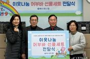 [경기뉴스원/경기뉴스1] | 수원시 장안구 정자2동 관내 북수원신협이 설 명절을 맞이하여 어려운 이웃을 위해 어부바 선물세트 80세트를 전달했다. 어부바 선물세트는 생필품과 함께 북수원신협에서 발행한 쿠폰이 함께 들어있으며, 해당 쿠폰은 정자시장 내 가맹 점포에서 자유롭게 이용할 수 있어 어려운 이웃을 돕는 동시에 관내 소상공인들과도 상생할 수 있도록 준비됐다. 북수원신협 윤주남 이사장은 “한파로 혹독한 겨울을 나고 있는 어려운 이웃들에게 작게나마 위로가 되길 바란다”며 “앞으로도 이웃사랑과 나눔을 실천하는 데 앞장서겠다”고 전했다. 윤상숙 정자2동장은 “연일 계속되는 한파로 마음까지 추워지는 시기에 따뜻한 나눔을 실천해주시는 북수원신협에 감사드리며, 선물세트는 도움이 필요한 이웃들에게 잘 전달하겠다”고 말했다. 한편, 북수원신협은 매년 명절을 비롯하여 어린이날에도 관내 주민들을 위한 기부활동을 꾸준히 해오며 지역사회의 발전에 적극 앞장서고 있다.