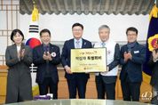 [경기뉴스원/경기뉴스1] | 전북특별자치도의회 문승우 의장(군산4)은 19일 의장실에서 대한적십자 전북특별자치도지사 김홍식 회장에게 적십자 특별회비를 전달했다. 적십자 특별회비는 도민의 자율적 참여로 모금되며 재난 이재민 구호와 위기가정 긴급지원, 취약계층 복지증진 등의 다양한 지원 사업에 사용된다. 문승우 의장은 "소외된 이웃사랑 실천을 위해 헌신을 다하는 대한적십자 전북특별자치도지사에 대한 감사한 마음이 크다" 면서 "장기화되고 있는 경기침체 속에서 어려운 이웃을 위해 미력하나마 보탬이 될 수 있어 기쁘다"고 말했다. 그러면서 "도민들이 적십자 회비 보금행사에 적극적으로 참여한다면 어려움에 처해 있는 소외계층에게는 커다란 용기와 힘이 될 것"이라고 강조했다. 한편 지난 1일부터 시작된 1차 적십자회비 집중모금 행사는 내년 1월 31일까지 펼쳐지며, 내년 2월 1일부터 3월 31일까지 2차 모금이 진행된다. 참여 방법은 지로와 인터넷, 가상계좌, 큐알(QR) 코드 등의 방법으로 가능하며, 연말정산 시 세액공제 혜택도 주어진다.