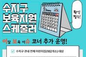 [경기뉴스원/경기뉴스1] | 용인특례시 수지구는 보육 정책 등을 알기 쉽게 정리한 ‘보육지원 스케줄러’에 이달 보육 이슈 항목을 신설했다고 15일 밝혔다. 구는 사업별 신청·정산 시기가 달라 신청 오류, 누락 등의 민원이 빈번함에 따라, 이를 해결하기 위해 2025년부터 보육지원 스케줄러를 운영하고 있다. 보육지원 스케줄러는 어린이집과 보육 교사 등을 대상으로 각종 지원 사업의 일정 등을 사전에 공유해 대상자들이 빠짐없이 신청할 수 있도록 돕고자 마련됐다. 구는 매달 신청·정산 지원사업, 제출일, 제출 방법, 주요 변경사항 등을 표로 만들어 보육인 오픈 채팅방과 보육통합정보시스템에 선보이고 있다. 여기에 이달 보육 이슈 항목을 추가해 지역 내 어린이집 182곳을 대상으로 매월 각종 지원사업을 사전에 알리고 변경되는 정책과 최근 이슈, 주요 정보 등을 상세히 제공하기로 했다. 구 관계자는 “보육 교사들의 업무 부담을 덜고, 효율적인 보육 현장을 지원하기 위해 이달 보육 이슈 코너를 마련했으니 유용하게 이용해 주시기를 바란다”고 했다.