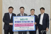 [경기뉴스원/경기뉴스1] | 농협중앙회 충북본부가 민족 최대 명절인 추석을 앞두고 어려운 이웃을 위해 따뜻한 나눔을 실천했다. 농협중앙회 충북본부는 22일 청주시청을 찾아 잡곡세트 180박스(810만원 상당)를 청주시에 기탁했다. 임시청사 직지실에서 열린 기탁식에는 이범석 청주시장과 이용선 총괄본부장, 임세빈 본부장, 김영준 노조위원장 등 농협은행 충북본부 관계자들이 참석했다. 이번에 전달된 잡곡세트는 청주시 관내 소외계층에게 전달돼, 이웃들이 보다 풍요롭고 따뜻한 추석 명절을 보낼 수 있도록 지원할 예정이다. 이용선 총괄본부장은 “이번 나눔으로 어려운 이웃들이 행복한 명절을 보내는데 작은 보탬이 되길 바란다”며 “앞으로도 지속적인 나눔 활동을 통해 이웃 사랑을 실천하겠다”고 말했다. 이범석 청주시장은 “농협중앙회 충북본부의 따뜻한 나눔은 우리 지역의 어려운 이웃에게 큰 힘이 될 것”이라며 “기탁하신 물품은 어려운 이웃에게 잘 전달하도록 하겠다”고 감사 인사를 전했다.