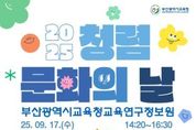 [경기뉴스원/경기뉴스1] | 부산광역시교육청은 오는 17일 오후 2시 부산시교육청교육연구정보원 대강당에서 학생, 학부모, 교직원 등 교육가족과 함께하는 ‘2025년 청렴 문화의 날’을 개최한다. 올해 행사는 청렴의 가치를 감동적인 이야기와 문화 공연, 소통 전문가의 특강으로 풀어내 모든 세대가 함께 공감하고 즐기는 축제의 장으로 마련했다. 행사는 크게 1부, 2부로 나누어 운영한다. 1부에서는 청백리 서포터즈와 학생들이 함께 만드는 공연을 시작으로 지난 8월 성황리에 마무리된 청렴 콘텐츠 공모전의 시상식을 진행한다. 2부에서는 인기 프로그램 ‘유 퀴즈 온더 블럭’에 출연해 화제를 모은 리플러스 인간연구소 박재연 소장이 명사 특강을 진행한다. ‘자존감 대화법’의 저자이기도 한 박 소장은 ‘관계를 살리는 공감 소통’을 주제로 강연할 예정이다. 이 밖에도 행사장 로비에서는 다채로운 부대행사도 열린다. ▲‘청렴 콘텐츠 공모전’ 수상작 전시 ▲청백리 서포터즈와 교직원들의 생생한 청렴 활동을 담은 동영상 상영 ▲즐거운 추억을 남길 수 있는 ‘청렴네컷’ 포토존 등이 운영되어 풍성한 볼거리와 즐길 거리를 제공할