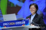 [경기뉴스원/경기뉴스1] | 서울 강북구는 지난 9일 강북문화예술회관 강북소나무홀에서 ‘2026 강북구 신년인사회’를 개최하고, 주민 및 지역 인사들과 새해 인사를 나눴다. 이날 행사에는 국회의원, 교육감, 당협위원장, 시·구의원, 주민 등 700여 명이 참석했으며, 강북구시니어합창단과 강북구여성합창단의 아름다운 화음이 어우러진 식전공연으로 행사의 문을 열었다. 이후 국민의례, 주민 새해소원 영상 상영, 신년 덕담, 구청장 신년사 순으로 행사가 진행됐다. 특히 행사 중 상영된 구민 새해소원 영상에는 강북구에서 꿈과 희망을 품고 살아가고 있는 이웃들의 새해를 맞는 기대와 바람이 생생하게 담겨, 참석자들의 공감을 이끌었다. 이어진 신년 덕담 시간에는 서로의 안녕과 희망을 전하며 새해를 맞이하는 따뜻한 분위기가 이어졌다. 이순희 강북구청장은 신년사를 통해 “그동안 다져온 행정의 기반을 바탕으로, 2026년에는 구민의 일상 속에서 변화를 만들어가는 한 해가 되도록 하겠다”며, 혁신과 성장, 상생과 복지, 자연과 웰니스, 문화와 경제를 중심으로 한 구정 운영 방향을 설명했다. 구는