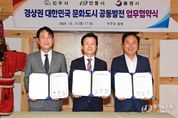 [경기뉴스원/경기뉴스1] | 대한민국 문화도시로 지정된 진주와 안동, 통영 등 경상권 3개 도시들이 대한민국 문화도시의 성공적인 조성을 위한 협력의 첫걸음을 내딛었다. 진주시는 13일 진주성 ‘중영’에서 조규일 진주시장을 비롯해 권기창 안동시장, 허대양 통영부시장 등 3개 도시의 시장과 관계자들이 참석해 ‘경상권 대한민국 문화도시 업무협약식’을 갖고 문화도시의 비전과 협력방안을 공유했다. ‘경상권 대한민국 문화도시 업무협약’은 각 문화도시가 보유한 사업 운영방안과 전략, 문화 인프라를 상호 공유·활용해 업무역량을 강화하고 시너지를 창출하는데 목적이 있다. 이번 협약으로 경상권 문화도시는 ▲대한민국 문화도시 조성사업 공동추진 ▲문화예술인 교류 확대 ▲권역별 특성을 반영한 시민 참여형 문화프로그램 개발 ▲국내외 문화도시 네트워크 강화 등을 함께 추진하기로 했다. 조규일 진주시장은 “경상권 도시 간 유기적이고 협력적인 관계 형성과 상생발전을 통해 대한민국 문화도시 사업의 성공을 위해 오늘 자리를 마련하게 됐다”며, “문화로 빛나고 관광으로 즐거운 지속 가능한 서부경남 문화관광 생태계를 조성하여, ‘빛담