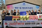 [경기뉴스원/경기뉴스1] | 수원특례시 영통구 매탄1동은 지난 3일 설 명절을 맞이해 관내 저소득층 300여 세대에 후원물품을 전달하는 이웃돕기 나눔 전달식을 개최했다. 이번 설 명절 이웃돕기 후원은 매탄1동 9개 단체(주민자치회, 통장협의회, 방위협의회, 바르게살기위원회, 새마을지도자협의회, 매탄136자율방범대, 지역사회보장협의체, 매1사랑장학후원회, 구매탄시장상인회)에서 성금 197만원, ‘매탄을새롭게’ 단체에서 성금 50만원을 기부했다. 아울러 구매탄시장상인회는 구매탄시장상품권 60만원을 추가 기부하여 해당 상품권은 고령의 기초수급자 어르신에게 배부될 예정이다. 이날 전달식에 참석한 매탄1동 9개 단체에서는 전달식 종료 후 직접 대상자 가정으로 찾아가 후원물품을 전달하고 어르신들의 건강과 안부를 확인했다. 좌성태 매탄1동 주민자치회장은 “지역 내 소외된 가구들을 위해 앞으로도 지역사회와 함께하는 이웃나눔 활동을 이어가겠다”고 전했다. 김은정 매탄1동장은 “어려운 시기에도 꾸준히 후원해 주시는 단체와 후원자분들께 감사드리며, 관내 취약가구 대상자 모두가 따뜻한 명절을 보낼 수 있도록 노력하겠다”
