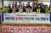 [경기뉴스원/경기뉴스1] | 수원시 영통구 매탄2동 행정복지센터는 지난 3일, 설 명절을 맞아 관내 어려운 이웃을 위한 ‘이웃사랑 나눔 전달식’을 개최했다. 이번 전달식에는 매탄2동 단체장협의회, 인근 상가, 주민들이 정성껏 마음을 모아 백미 150포, 생필품 300세트, 컵라면 32박스 등 후원 물품을 마련했다. 모아진 물품은 관내 복지 사각지대 발굴 대상자와 저소득 취약계층 가구에 전달되며, 안부 확인도 함께 진행할 예정이다. 승병숙 매탄2동장은 “설 명절을 맞아 도움이 필요한 어려운 이웃을 위해 올해도 잊지 않고 후원해 주신 모든 분들께 감사드리며, 관내 어려운 분들이 따뜻한 설 명절을 보낼 수 있도록 후원물품을 잘 전달하겠다”고 말했다. 한편 매탄2동은 이번 나눔 전달식을 비롯해, 연중 취약계층 대상 지원 사업과 복지 사각지대 발굴 활동을 통해 지역 주민들이 체감할 수 있는 복지 서비스를 제공하고 있다.