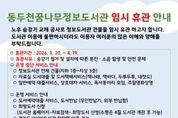 [경기뉴스원/경기뉴스1] | 동두천시 도서문화사업소 꿈나무정보도서관은 노후 승강기 교체 공사 시행에 따라 오는 3월 20일부터 4월 19일까지 임시 휴관한다고 밝혔다. 꿈나무정보도서관은 2005년 개관 이후 약 20년이 경과한 시설로, 설치된 승강기의 내구연한 도래에 따라 안전사고를 예방하고 시설 안전성을 확보하기 위해 교체 공사를 실시한다. 이번 공사는 승강기 철거 및 신규 설치 과정에서 분진과 소음이 발생하고 공사 자재 적치로 인한 안전사고 우려가 있어 이용자 보호와 원활한 공사 진행을 위해 도서관 시설 전체와 도서 대출·열람 서비스를 임시 중단한다. 휴관 기간 동안 시민 불편을 최소화하기 위해 오르빛도서관, 동두천시립도서관 등 공공도서관 2곳, 남산모루 작은도서관과 종합운동장 지혜의 등대 등 작은도서관 2곳, 스마트도서관을 대체 이용 시설로 안내하고 관련 내용을 적극 홍보할 계획이다. 도서관 관계자는 “이번 휴관은 도서관 이용자의 안전 확보와 이동 편의 증진을 위한 불가피한 조치”라며 “다소 불편하시더라도 시민 여러분의 많은 이해와 협조를 부탁드린다”라고 말했다.