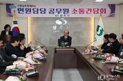 [경기뉴스원/경기뉴스1] | 상주시는 12월 24일 시청 소회의실에서 민원담당 공무원과의 소통 간담회를 개최했다. 이번 간담회는 연말 민원처리 마일리지 및 국민신문고 민원 처리 우수 공무원으로 선정된 직원 18명의 시상식이 함께 진행됐다. 민원처리 우수공무원 시상에는 민원처리 단축에 앞장선 민원처리 마일리지 우수공무원 12명, 국민신문고 민원처리 우수공무원 6명이 각각선정되어 축하를 받았다. 이어 진행된 소통 간담회에서는 민원 응대 과정에서 겪는 고충과 개선 의견을 자유롭게 공유하며 상호 소통하는 시간을 가졌으며, 민원 응대 현장에서 묵묵히 소임을 다하고 있는 민원담당공무원들의 노고를 격려했다. 강영석 상주시장은 “최근 악성 민원이 증가하는 등 어려운 여건속에서도 민원처리를 담당하는 직원들의 노고에 깊이 감사드린다. 앞으로도 직원들과의 소통을 통하여 민원서비스 질 향상을 위해 노력하겠다.”고 말했다. 상주시는 앞으로도 정기적인 소통 간담회 개최와 우수공무원 발굴을 통해, 시민이 만족하는 민원행정 서비스 제공에 앞장설 계획이다.