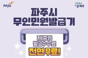 [경기뉴스원/경기뉴스1] | 파주시는 시민들의 비용 부담을 줄이고 생활 편의를 높이기 위해 2026년 1월 1일부터 관내 무인민원발급기에서 발급되는 제증명 수수료를 전면 무료화한다고 밝혔다. 그동안 무인민원발급기 수수료는 국민기초생활수급자, 국가유공자 등 일부 대상자에게만 감면·면제 혜택이 적용돼왔으나, 이번 전면 무료화 조치로 파주시민 누구나 동일하게 무료 혜택을 받을 수 있게 됐다. 다만, 부동산 등기부등본은 무료화 대상에서 제외된다. 무인민원발급기는 지문 인증 또는 모바일 신분증 인증을 통해 간편하게 이용할 수 있으며, 파주시는 현재 40개소에서 총 45대의 무인민원발급기를 운영 중이다. 이 중 27개소는 연중무휴 24시간 이용 가능해, 야간이나 휴일에도 시민들이 편리하게 민원서류를 발급받을 수 있다. 파주시 관계자는 “이번 무인민원발급기 수수료 전면 무료화는 금액으로는 크지 않지만, 시민들이 일상에서 자주 체감할 수 있는 ‘생활 속 작은 혜택’”이라며 “앞으로도 시민의 일상을 세심하게 살피며 생활밀착형 행정서비스를 계속 추진해 나가겠다”라고 밝혔다. 한편, 무인민원발급기의 설치 위치 및 운영