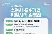 [경기뉴스원/경기뉴스1] | 수원특례시가 ‘2026 중소기업 지원시책 설명회’에 참가할 수원시 중소기업 대표·임직원 100여 명을 1월 30일까지 모집한다. ‘2026년 중소기업 지원시책 설명회’는 2월 5일 오후 2시부터 4시까지 수원시 기업지원센터 대회의실에서 열린다. 수원시와 ▲국세청 ▲경기지방중소벤처기업청 ▲수원고용복지플러스센터 ▲경기도경제과학진흥원 ▲수원도시공사 ▲수원상공회의소 ▲수원산업단지관리공단 ▲경기벤처기업협회 ▲수원기업새빛펀드 운용사(6개) ▲비자코리아 ▲한국건설생활환경시험연구원(KCL) 등 11개 기관이 참여해 각 기관의 기업지원 시책을 설명한다. 수원시가 자금 지원, 기술개발·수출 지원 사업 등 기업지원 시책을 설명한 후 유관기관들이 지원사업을 안내한다. 2차 수원기업새빛펀드 운용사들은 투자 시책을 설명한다. 설명회 후 질의응답이 이어진다. 참가를 원하는 기업인은 1월 30일까지 온라인으로 신청해야 한다. 홍보물의 큐알 코드를 스마트폰으로 스캔하면 온라인 신청 페이지로 연결된다. 수원시 관계자는 “유관기관과 유기적인 협조를 바탕으로 종합적인 기업 지원체계를 구축했다”