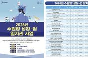 [경기뉴스원/경기뉴스1] | 수원특례시가 ‘2026년 수원형 성장-업 일자리사업’에 참여할 시민 46명을 모집한다. 수원형 성장-업 일자리사업은 참여자가 공공부문에서 일하며 실무 경험을 쌓고, 직업 역량을 강화하는 것이다. 민간 일자리로 원활하게 취업하도록 취업경쟁력 향상을 지원한다. 2026년에는 ▲일자리카운슬러 ▲일자리발굴단 ▲청년 프로젝트 매니저 ▲박물관 홍보디자이너 ▲수원컨벤션센터 임대마케터 등 22개 부서 35개의 실무형 일자리를 운영한다. 공공기관·단체와 컨소시엄을 구성해 다양한 분야의 실무 경험과 경력형성 기회를 제공한다. 부서별 채용 계획에 따라 1월 중 참여자를 모집한다. 선발된 참여자는 2026년 2월부터 11월까지 10개월간 근무한다. 임금은 수원시 생활임금을 적용해 시급 1만 1480원을 지급된다. 자세한 내용은 수원시 홈페이지 ‘분야별 정보→일자리·노동→수원형 성장-업 일자리’에서 확인할 수 있다. 수원형 성장-업 일자리사업은 2025년까지 총 353개의 사업으로 716개의 일자리를 창출했다. 수원시 관계자는 “수원형 성장-업 일자리 사업은 공공부문 실무 경험을