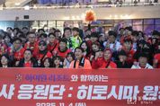 [경기뉴스원/경기뉴스1] | 강원특별자치도는 11월 4일 오후 5시 30분, 일본 히로시마 에디온 피스 윙 스타디움 원정석 게이트 앞에서 ‘강원FC 승리기원 행사’를 개최했다고 밝혔다. - 이번 행사는 2024~2025 아시아 챔피언스리그 조별리그 원정경기를 앞두고 선수단의 선전을 기원하고, 원정응원단을 격려하기 위해 마련됐다. 이 자리에는 김진태 도지사, 김시성 도의회의장을 비롯한 도 대표단, 주히로시마 총영사관, 현지교민, 히로시마 청소년문화센터 청소년, 강원FC 팬 등 '강원이나르샤 응원단' 약 200명이 참석했다. 이날 현장에서는 팬 선발 경쟁률 5.56대 1(신청자 556명, 선정자 100명)을 뚫고 일본 원정길에 오른 강원 FC 팬들이 히로시마 현지 청소년과 교민들과 함께 뜨거운 응원전을 펼치며 열기를 더했다. 히로시마 청소년 아카사카 마유카 학생은 한국어로 “오늘 이렇게 강원FC 경기를 직접 볼 수 있어 영광”이라며, “친구들과 이 자리에 함께한 분들과 진심으로 응원하겠다”고 말했다. 김시성 의장은 “승리를 위해 우리가 똘똘 뭉쳐 응원을 잘해야 한다”며, “응원의 힘이 곧