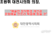 【대전=경기뉴스원/경기뉴스1】 | 조원휘 대전시의회 의장은 30일 대전예술의전당에서 열린 ‘대전 아트콰이어’ 창단식에 참석해 축하의 뜻을 전하고, 시민들이 일상 속에서 다양한 문화예술을 접할 수 있도록 지속적인 지원을 약속했다. 대전을 대표하는 기관·단체장, 예술단 후원회, 언론사 관계자 등 70여 명이 참석한 가운데 단원 위촉장 수여, 주요 내빈 축사, 시민합창단의 축하 연주, 기념촬영 등의 순으로 진행됐다. 조 의장은 축사를 통해 “대전 아트콰이어는 2023년 6월 창단한 아트필 하모닉 오케스트라에 이은 두 번째 공립예술단체로, 대전시민들이 풍성한 문화예술을 향유할 수 있는 소중한 기회를 제공할 것”이라며 창단의 의미를 강조했다. 이어 그는 “2032년 준공을 목표로 하는 약 1만 2,700평 규모의 음악전용 공연장 건립이 차질 없이 추진될 수 있도록 시의회 차원에서 철저히 점검하겠다”며, “앞으로도 예술인들의 안정적인 창작활동을 위한 환경 개선과 시민들을 위한 문화예술 인프라 확충에 의회의 역할을 다하겠다”고 밝혔다. 대전 아트콰이어는 지역 문화예술 발전을 위한 대전시의 두 번째 공립예술단으로, 향후 다양한 공연과 지역사회 참여를 통해 대전 시민의 문화