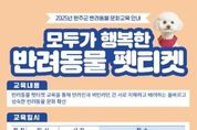 [경기뉴스원/경기뉴스1] | 완주군이 성숙한 반려문화 정착과 동물복지 향상을 위해 ‘모두가 행복한 반려동물 펫티켓’ 문화교육을 실시한다. 이번 교육은 반려인과 비반려인이 함께 어울리는 건강한 반려문화 조성을 목표로, 완주군 내 인구밀집 지역을 중심으로 순회 진행된다. 교육은 오는 25일 용진읍 운곡지구를 시작으로 봉동 둔산, 이서 혁신, 삼봉지구를 거쳐 마지막으로 11월 22일 구이 호수마을까지 총 5회에 걸쳐 운영될 예정이다. 이번 반려동물 문화교육은 전북임상수의사회 소속 수의사들이 강사로 참여해 전문적이고 체계적인 내용으로 진행된다. 참석자들은 수의사로부터 반려동물의 건강관리, 문제행동 예방법 등 실생활에 유용한 정보를 듣고, 평소 궁금했던 사항을 직접 상담할 수 있는 기회를 갖게 된다. 유희태 완주군수는 “반려인들이 비반려인을 배려하는 펫티켓을 실천해 모두가 행복한 사회를 만드는 것이 중요하다”며 “이번 반려동물 문화교육을 통해 올바른 반려문화가 정착될 수 있도록 군민 여러분의 많은 관심과 참여를 바란다”고 말했다. 반려동물 문화교육 관련 문의는 완주군청 축산지원과로