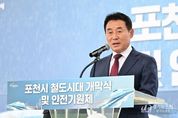 [경기뉴스원/경기뉴스1] | 포천시는 10월 1일 오후 4시 소흘읍 행정복지센터 인근에서 옥정~포천 광역철도 건설사업 ‘포천시 철도시대 개막식’(부제: 시민과 함께 포천의 내일(Rail)을 잇다)과 안전기원제를 개최했다. 이번 행사는 포천시에 첫 광역철도가 착공되는 역사적 순간을 기념하고, 새로운 교통 시대의 출발을 알리기 위해 마련했다. 이날 개막식에는 백영현 포천시장을 비롯해 국회의원, 시·도의원, 경기도와 양주시 관계자, 지티엑스(GTX) 포천유치추진위원회, 그리고 많은 포천시민들이 참석해 철도시대의 개막을 함께 축하했다. 행사는 포천시립예술단의 대북과 모듬북 공연과 소리 공연으로 시작을 알리며 분위기를 고조시켰다. 1부에서는 옥정-포천 광역철도 건설사업의 경과보고를 진행하고 사업 추진 과정과 향후 계획을 공유했다. 또한 주요 기관 단체장과 고등학생 대표가 함께한 환영 세레머니를 통해 이번 착공이 미래세대를 위한 기반 조성과 포천의 새로운 도약임을 강조했다. 2부에서는 시공사인 태영건설, 디엘(DL)건설, 극동건설이 주관하는 안전기원제가 열려, 공사기간 중 무사고와 사업의 성공적 추진을 기원했