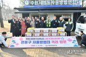 [경기뉴스원/경기뉴스1] | 수원시 영통구는 지난 12일 영통발전연대가 다가오는 설 명절을 맞아 영통구 자율방범대 초소를 방문하여 격려 물품을 전달했다고 밝혔다. 영통구 자율방범대는 각종 범죄·사고가 우려되는 관내 취약 구역을 집중 순찰하며 안전한 지역사회를 조성하기 위해 활동하고 있는 자율적인 자원봉사 단체이다. 이영종 영통발전연대 회장 및 임원들은 영통구 매탄3지대를 비롯한 5개 동 자율방범대 초소를 방문해, 명절을 앞두고도 지역 치안 강화를 위해 힘쓰고 있는 대원들의 노고를 격려했다. 이영종 영통발전연대 회장은 “바쁜 와중에도 늦은 밤까지 지역 안전을 위해 기꺼이 헌신하시는 대원 여러분의 노고에 진심으로 존경과 감사를 표한다”며 “여러분의 헌신으로 영통구가 범죄 없는 안심 마을로 자리 잡을 수 있었던 만큼, 앞으로도 주민들이 평온한 일상을 누릴 수 있도록 든든한 파수꾼이 되어주시길 부탁드린다”고 말했다. 장수석 영통구청장은 “지역 공동체의 안전을 위해 자발적으로 봉사에 참여해 주시는 자율방범대원 여러분께 깊이 감사드린다. 앞으로도 자율방범대와 함께 소통하며 영통구 발전을 위해 최선을 다하겠다