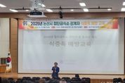 [경기뉴스원/경기뉴스1] | 논산시(시장 백성현)는 29일 지체장애인협회 논산시지회 강당에서 ‘소중한사람들 활동지원사 월례교육’을 개최했다. 이번 교육은 활동지원사의 전문성을 강화하고 소중한사람들의 권익 보호를 위해 충남지체장애인협회 논산시지회(회장 손병복)의 주최로 진행됐다. 이날 현장에는 120여 명의 활동지원사가 참석해 부정수급 방지, 업무 보수교육 등 올바른 지원 서비스 제공을 위한 사례 중심 강의로 큰 호응을 얻었다. 백성현 논산시장은 축사를 통해 “리더의 책임은 희망을 실천하는 데서 비롯된다”며 “시민의 안전한 삶을 위한 활동지원사의 역할이 매우 크다”고 강조했다. 이어 “논산의 가치는 세계 속의 논산으로 이어져야 하며, 이는 우리 가족과 후손들에게 큰 변화로 남을 것”이라고 활동지원사들을 격려했다. 또 지체장애인협회 논산시지회 손병복 회장에게 감사의 뜻을 전하며 “이웃을 사랑하는 마음으로 헌신하는 활동지원사분들의 행복을 기원하고 늘 응원하겠다”고 말했다. “이웃을 사랑하는 마음으로 헌신하는 활동지원사분들의 노고에 깊이 감사드린다”고 말했다. 논산시와 지체장애인협