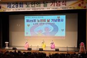[경기뉴스원/경기뉴스1] | 청양군은 30일 청양군 문화예술회관에서 10월 경로의 달을 맞아 대한노인회 청양군지회 주관으로 제29회 노인의 날 기념행사를 성대히 개최했다. 이날 행사에서는 노인복지 발전에 기여한 모범 어르신과 관계자 34명이 수상의 영예를 안았다. ▲국회의원 표창 4명 ▲도지사 표창 2명 ▲군수상 10명 ▲의장상 10명 ▲노인회 중앙회장상 2명 ▲노인회 연합회장상 1명 ▲청양군지회장상 5명 등이 전수됐다. 또한 청양에어로빅 동아리를 비롯한 6개 팀의 다채로운 축하 공연이 이어져 참석한 어르신들과 내빈들에게 즐거움과 감동을 선사했다. 김돈곤 군수는 “경로의 달을 맞아 함께 자리해주신 어르신들께 깊은 존경과 감사를 드린다”며 “앞으로도 어르신들이 행복하고 존경받는 지역사회를 만들기 위해 경로복지 증진에 최선을 다하겠다”고 밝혔다.