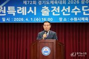 [경기뉴스원/경기뉴스1] | 수원특례시의회는 1일 수원시체육회관 2층 대회의실에서 열린 '제72회 경기도체육대회 수원시 선수단 결단식'에 참석해 선수단을 격려하고 선전을 기원했다. 이번 결단식은 오는 4월 16일부터 18일까지 광주시에서 열리는 제72회 경기도체육대회를 앞두고 수원시 선수단의 각오를 다지고 사기를 높이기 위해 마련됐다. 이날 행사에는 수원특례시의회 의장을 비롯해 수원시장, 수원시체육회장, 체육회 임원, 선수단 등 약 180여 명이 참석했으며, 출전보고와 단기 수여, 선수대표 선서 등이 진행됐다. 특히 수원시는 총 473명의 선수단이 출전해 27개 종목에서 기량을 겨룰 예정이다. 수원특례시의회는 결단식에 참석해 선수단의 사기를 북돋고, 시민과 함께하는 체육도시 수원의 위상을 높이기 위한 응원의 뜻을 함께했다. 이재식 의장은 축사를 통해 “그동안 흘린 땀과 노력이 결실을 맺을 시간이 다가왔다”며 “수원 선수단이 최고의 기량과 스포츠 정신으로 대회에 임해 시민들에게 큰 감동을 전해주길 바란다”고 말했다. 이어 “결과도 중요하지만 정정당당한 경기와 서로를 믿는 팀워크가 더욱 빛날 것”이라며