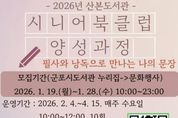 [경기뉴스원/경기뉴스1] | 군포시산본도서관은 2026년에도 관내 시니어들에게 책을 통해 서로 소통하고 공감하는 능동적 독서교육 프로그램인 ‘시니어 북클럽 양성 과정’을 운영한다고 밝혔다. 이번 교육은 2월 4일부터 4월 15일까지 매주 수요일 오전 10시부터 12시까지 총 10주차로 진행되며 북클럽 운영을 위한 운영법, 글쓰기 방법, 주제도서의 낭독과 필사 등에 대해 교육하여 시니어 독서동아리로 자발적인 활동을 할 수 있도록 실전교육 위주로 진행된다. 산본도서관에서 2025년도에 ‘낭독과 필사로 떠나는 글쓰기 여행’ 수업을 맡았던 최선화 강사가 진행하며 도서관은 교육 기간 중, 신규 시니어 독서동아리를 모집 및 결성하여 지속적인 독서 모임 활동을 지원할 계획이다. 함께 글쓰기 및 독서에 관심있는 관내 55세 이상 시니어라면 누구나 신청 가능하며, 1월 19일부터 선착순으로 20명을 모집한다. 신청은 군포시도서관누리집 문화행사신청 또는 전화 접수가 가능하다. 하은호 군포시장은 “앞으로 산본도서관이 시니어 세대가 책으로 하나 되는 소통공간이 될 수 있도록 다양한 독서교육 프로그램을 운영하겠다”라며 “