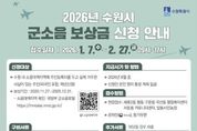 [경기뉴스원/경기뉴스1] | 수원특례시는 2월 27일까지 ‘2026년 군소음 피해보상금’ 신청을 받는다. 신청 대상은 2020년 11월 27일부터 2025년 12월 31일까지 수원시 소음대책지역에 주민등록을 두고 실제 거주한 주민이다(외국인 포함). 소음대책지역은 국방부 군소음포털에서 확인할 수 있다. 2월 27일까지 신청해야 한다. 정부24 홈페이지, 현장 방문, 등기 우편 중 한 가지 방법을 선택해 신청하면 된다. 현장 신청은 세류2동·평동·구운동·곡선동 행정복지센터와 서둔동 커뮤니티센터(권선구 서호로 138), 탑동시민농장(권선구 서둔로 155)에서 평일 오전 9시부터 오후 5시까지 할 수 있다. 1월 13일까지는 출생 연도 끝자리 기준 5부제를 적용한다. 월요일은 1·6, 화요일 2·7, 수요일 3·8, 목요일 4·9, 금요일 5·0 해당자가 신청할 수 있다. 온라인 신청은 정부24 홈페이지에서 ‘군소음’을 검색해서 할 수 있다. 소급 보상을 원하는 주민은 과거 연도별로 각각 추가 신청해야 한다. 등기 우편 신청은 ‘수원시 팔달구 효원로 241, 수원시청 공항이전추진