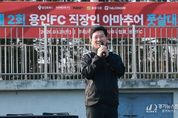 [경기뉴스원/경기뉴스1] | 이상일 용인특례시장은 21일 축구도시 용인서 열린 직장인 풋살대회와 용인시박물관 기획전 개막식, FK2 풋살리그 경기장을 잇달아 찾았다. 이날 오전 기흥레스피아에서는 ‘2026 용인FC와 함께하는 직장인 풋살대회’가 열려 지역 내 직장인 12개 팀, 약 200명이 참가해 열띤 경기를 펼쳤다. 대회 현장을 찾아 참가팀을 응원한 이상일 시장은 이어 용인시박물관에서 열린 2026년 기획전 ‘함께 킥오프, 우리들의 축구도시 용인’ 개막식에도 참석했다. 이번 전시는 시민구단 용인FC 창단을 기념해 한국 축구의 태동기와 용인축구센터를 거쳐 용인FC로 이어지는 지역 축구 발전사를 조명하기 위해 마련됐다. 용인축구센터와 용인FC, 서포터즈 문화를 함께 소개하며 ‘시민구단의 주체는 시민’이라는 의미를 담아 축구를 통해 형성된 지역 공동체의 가치를 전달하는 데 초점을 맞췄다. 개막식에는 이상일 시장과 용인FC 선수단, 서포터즈, 시민 등 150여 명이 참석했다. 이 시장과 용인FC 선수단은 전시장을 찾은 시민들과 함께 전시를 관람하며 가족 단위 관람객과 자연스럽게