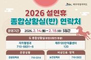 [경기뉴스원/경기뉴스1] | 제주특별자치도는 13일 진명기 행정부지사 주재로 ‘2026년 설연휴 종합대책 보고회’를 열고 ‘민생에 온기를, 안전에 안심을 더하는 설명절’을 주제로 분야별 세부 추진계획을 점검했다. 이날 보고회에는 정무부지사를 비롯해 안전건강실장, 특별자치행정국장, 행정시 부시장 등 상황반별 실국단장 20여 명을 포함한 130여명의 간부공무원이 참석했다. 제주도는 14일부터 18일까지 특별자치행정국장을 총괄로, 총 7개반 1,491명을 투입해 종합상황실을 운영한다. 도 7개반 366명, 제주시 7개반 625명, 서귀포시 9개반 500명이 참여하며, 하루 평균 298명이 현장에서 비상근무를 선다. 제주 120 만덕콜센터와 당직 근무자가 도민과 관광객 불편신고를 접수한다. 지난 10일 수립해 추진 중인 설연휴 종합대책은 ▲민생경제 안정 ▲도민안전 확보 ▲교통․관광 편의 ▲도민불편 해소 ▲나눔실천 등 5개 분야로 구성됐다. 물가안정 및 소비촉진을 위해 탐나는전 적립률 상향과 전통시장 온누리상품권 환급행사 등 소비지원 대책을 추진한다. 탐나는전 적립률을 2월 한 달간 20%로