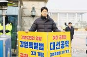 [경기뉴스원/경기뉴스1] | 강원특별자치도의회 문관현 기획행정위원장은 27일 여의도 국회 앞에서 ‘강원특별법 3차 개정안’의 조속한 처리를 촉구하며 릴레이 1인 시위에 나섰다. 개정안 통과를 위해 누구보다 앞장서 온 강원특별자치도의회의 상임위원장이 도민을 대신해 국회 앞에서 직접 행동에 나섰다는 점에서 큰 의미를 갖는다. 문 위원장은 국회 정문 앞에서 피켓을 들고 “강원특별법 3차 개정안은 강원의 미래를 여는 열쇠이자 300만 도민의 절박한 요구”라며,“도민의 명령을 받드는 도의회가 더는 침묵할 수 없다. 국회는 즉각 심사에 착수해야 한다”고 강하게 외쳤다. 그는 올해 내내 강원특별법 개정을 위해 중앙부처·국회·전문가 그룹과의 논의를 직접 챙기며 ‘책상에서만 말하는 정치가 아닌, 현장에서 답을 찾는 정치’를 강조해 왔다. 이번 1인 시위 역시 이러한 실천적 리더십의 연장선으로, 지역의 핵심 현안을 단순히 주장하는 데 그치지 않고 ‘몸으로 밀어붙이는 추진력’을 보여준 셈이다. 특히 “강원특별자치도가 실질적인 권한을 갖고 미래 전략을 스스로 주도하기 위해서는 3차 개정이 필수”라며, “정치