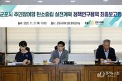 [경기뉴스원/경기뉴스1] | 군포시의회 더불어민주당 이우천 의원이 대표의원으로 주도하는 군포시 탄소중립연구모임이 11월 27일 군포시의회 2층 문화강좌실에서 '군포시 주민참여형 탄소중립 실천계획 정책연구용역 최종보고회'를 개최했다. 이번 보고회는 군포시 탄소중립정책의 기반을 강화하고, 시민 참여가 지속적으로 확장되는 실천 체계를 마련하기 위해 추진된 연구성과를 공유하는 자리로 마련됐다. 올해 4월부터 11월까지 약 8개월간 진행된 이번 정책연구용역은 건물·에너지·교통 등 주요 부문의 현황 분석, 주민설문 및 주민공론장을 통한 의견수렴, 군포시 탄소중립 실행과제 및 참여전략 마련, 행정체계·조례 개선 과제 제안 등을 종합적으로 제시했다. 특히 보고회에서는 군포시가 2030년까지 온실가스 감축 목표를 효과적으로 달성하기 위해 필요한 정책과제들이 집중적으로 논의됐다. 연구진은 재생에너지 확대(감축 목표의 31% 비중), 친환경 모빌리티 보급 확대(19%), 기존 건물 에너지 효율화(14%) 등을 핵심 전략으로 제시하며, 실질적인 감축 효과를 위한 실행 방안을 구체적으로 제안했다. 아울러 연구진은 시민 설