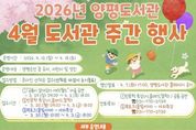 [경기뉴스원/경기뉴스1] | 양평군은 제62회 도서관의 날·도서관 주간(4월 12일~4월 18일)을 맞아 양평도서관에서 어린이부터 성인까지 전 연령층이 참여할 수 있는 공연, 강연, 체험 등 다채로운 행사를 운영한다. 이번 행사는 지역 주민의 독서문화 확산과 도서관 이용 활성화를 위해 마련됐으며, 다양한 세대가 함께 즐길 수 있는 프로그램으로 구성됐다. 어린이를 대상으로 공룡을 주제로 한 마술 공연 ‘공룡이 살아있다 매직월드’와 자개 및 조각 스티커를 활용한 ‘자개함 꾸미기·썬캐쳐 만들기’ 체험 행사가 진행된다. 성인을 위한 프로그램으로는 △시를 통해 사랑의 속성을 이해하고 삶의 아름다움을 발견하는 ‘시를 읽는 일에 대하여’ △클래식 음악을 통해 인생을 탐구하는 ‘365일 클래식이라는 습관’ △에피쿠로스 철학을 바탕으로 삶의 통찰을 나누는 ‘에피쿠로스 철학으로 만나는 지혜’ 등 인문학 특강이 마련됐다. 이와 함께 도서관 야외 테라스에서 작가와 이야기를 나누는 북토크 ‘물빛서재_내 이야기가 책이 되는 밤’도 진행된다. 행사 기간에는 대출 권수를 2배로 확대하고, 연체자의 대출 정지를 해제하는 등 이용