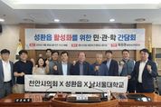 [경기뉴스원/경기뉴스1] | 천안시의회 육종영 행정보건위원장은 26일 ‘성환읍 활성화를 위한 민·관·학 간담회’를 주재하고, 성환 도시재생혁신지구 지정 이후의 현황과 발전 전략을 공유하는 한편 지역대학 연계 사업과 민·관·학 거버넌스 강화 방안을 논의했다. 이번 간담회는 성환읍을 지역구로 둔 육종영 위원장을 비롯해 김종호 성환읍 이장단협의회장, 방성민 주민자치회장, 최정순 성환읍 도시재생추진위원회 사무국장, 박주경 성환읍 부읍장, 천안시 도시재생과장·청년정책과장 등이 참석했다. 또한 남서울대학교 이주열 대학혁신지원사업단장, 안재일 라이즈사업단 팀장, 정준원·박삼칠 교수가 함께했다. 육종영 위원장은 “성환읍 도시재생은 건물 몇 개를 짓는 데서 끝나는 사업이 아니라, 주민과 대학, 산업, 행정이 맞물려 지속 가능한 변화를 만들어내는 민·관·학 거버넌스의 성패에 달려 있다”며 “하드웨어 중심의 사업 한계를 극복하고 초반부터 주민 참여를 보장해 진짜 혁신이 이루어지도록 지속적으로 노력하겠다”고 강조했다. 이주열 대학혁신지원사업단장은 “대학의 교육·연구 역량과 지역의 현안·자원을 연결해 주민과 학생이 함께