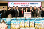 [경기뉴스원/경기뉴스1] | 지난 2일, MG하남새마을금고는 설 명절을 맞아 ‘사랑의 좀도리 운동’의 일환으로 백미 200포 총 2,000kg을 하남시미사강변종합사회복지관에 전달하며 지역사회 내 취약계층 이웃을 위한 따뜻한 나눔을 실천했다. ‘사랑의 좀도리 운동’은 쌀을 한 숟가락씩 덜어 모아 어려운 이웃을 돕는 전통적인 나눔 활동으로, MG하남새마을금고는 오랜 기간 이 운동을 통해 지역사회 취약계층을 위한 나눔을 지속적으로 이어오고 있다. 이번에 전달된 백미 200포는 설 명절을 앞두고 생계 부담이 큰 취약계층 가정에 전달되어 따뜻한 명절을 보내는 데 도움을 줄 예정이다. 이날 전달식에는 MG하남새마을금고 이점복 이사장 및 임직원을 비롯하여 하남시민생안정후원회 한상영 회장, 하남시미사강변종합사회복지관 조혜연 관장, 하남시니어클럽 양우식 관장, LH행복꿈터 지역아동센터 김길임 센터장, 다함께돌봄센터 김고운 센터장이 함께 자리를 빛내주었다. MG하남새마을금고는 매년 백미 지원뿐만 아니라 냉방기기 지원, 김장김치 지원, 생활용품 후원, 지역사회 상생 활동 등 다양한 사회공헌 활동을 통해 지역사회와 함께 성장하는 금