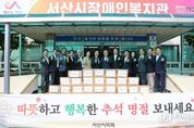 [경기뉴스원/경기뉴스1] | 서산시의회는 지난 26일 추석 명절을 앞두고 관내 복지시설을 방문해 위문품을 전달하고 명절의 따뜻함을 나눴다. 이날 조동식 의장을 비롯한 의원들은 서산효담요양원, 서산시장애인복지관 2개소를 직접 찾아가 기관이 요청한 생필품과 간식류 등 위문품을 전달하고 시설 종사자와 입소자들에게 따뜻한 명절 인사를 전했다. 또한 시설을 꼼꼼히 점검하고 현장에서 애쓰고 있는 관계자들과 대화를 나누며 애로사항을 청취하는 등 소통의 시간을 가졌다. 조동식 의장은 “추석은 이웃과 정을 나누는 뜻깊은 시기이지만, 여전히 도움의 손길이 필요한 분들이 많다”며, “소외되는 이웃의 마음을 헤아릴 수 있는 따뜻한 한가위 보내시길 바란다”고 전했다.
