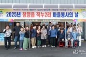 [경기뉴스원/경기뉴스1] | 청양군은 2025년 ‘마을봉사의 날’이 지난 25일 청양읍 적누2리 마을회관에서의 마지막 일정을 끝으로 성황리에 마무리됐다고 밝혔다. 올해 활동에는 총 281명의 자원봉사자가 참여했으며 3,610여 명의 주민들이 다양한 서비스를 제공받았다. ‘마을봉사의 날’ 사업은 4월부터 9월까지 총 9회에 걸쳐 마을별 맞춤형 봉사 서비스를 제공하는 주민밀착형 사업으로 운영됐다. 전문 자원봉사단(24개반)을 중심으로 이·미용, 칼갈이, 농기계 수리, 가전제품 수리, 복지 및 민원상담, 건강진료 등 생활편의 서비스를 제공했다. 이와 더불어 스트레스 검사, 근육 테이핑, 손 마사지, 서예 부채, 우리 이웃 함께 살피기 등 다양한 신규 프로그램을 병행해 주민들의 요구를 한 자리에서 해결했다. 특히 올해는 민관협력 특별사업인 ‘알려주세요! 찾아주세요!’와 ‘우리 이웃 함께 살피기’를 집중 운영했다. ‘알려주세요! 찾아주세요!’는 지역사회보장협의체·청양경찰서가 협력해 커피차를 통해 고독사 예방, 복지사각지대 발굴, 치매 실종예방 등 사회안전망 구축을 위해 적극적으로 홍