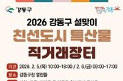 [경기뉴스원/경기뉴스1] | 서울 강동구는 강동구 친선도시에서 생산된 우수 농·수·특산물을 한자리에서 만나볼 수 있는 ‘2026년 설맞이 친선도시 특산물 직거래장터’를 오는 2월 5일부터 6일까지 이틀간 강동구청 열린뜰에서 개최한다고 밝혔다. 이번 장터에는 국내 23개 친선도시 중 22개 시·군에서 추천한 38개 농가가 참여해 역대 최대 규모로 운영된다. 경기도의 막걸리·쌀, 강원도의 찰옥수수쌀·꿀·한과, 충청도의 채소·잡곡·젓갈류, 경상도의 제철 과일·고기류, 전라도의 굴비·해조류·강정 등 명절 선물용으로 적합한 다양한 특산물이 판매될 예정이다. 운영시간은 2월 5일 오전 10시부터 오후 6시까지, 2월 6일 오전 9시부터 오후 5시까지이며, 누구나 자유롭게 방문해 구매할 수 있다. 본 행사는 매년 설·추석 명절을 앞두고 운영돼 온 행사로, 도농 간 상생과 지역 교류 활성화에 기여해 왔다. 행사 기간 동안에는 참여 농가의 자발적인 기부를 통해 판매 수익금 일부를 사회복지공동모금회 성금 및 식품 나눔 캠페인 등에 기부하는 나눔 행사도 함께 진행된다. 결제는 현금 및 카드로 가능하며, 일부 품목에 한