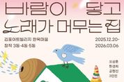 [경기뉴스원/경기뉴스1] | (재)김포문화재단은 연말연시를 맞아 가족의 온기와 새해의 희망을 담은 하반기 기획전시 '바람이 닿고 노래가 머무는 집'을 12월 20일부터 2026년 3월 6일까지 김포아트빌리지 한옥마을 창작 3·4·5동에서 개최한다고 밝혔다. 이번 전시는 ‘집’이라는 상징을 통해 한 해를 성찰하고 다가올 새해의 행복을 기원하는 시민참여형 전시로, 공현진·오상훈·한경희 작가가 조각, 패브릭, 미디어, 설치 작업을 선보인다. 이번 전시에서 세 명의 작가는 동시대 예술의 언어로 새로운 한해, 새로운 여정을 준비하는 이들에게 서로 다른 방식의 머무름을 건넨다. 공현진 작가는 한국의 무속과 민간신앙을 바탕으로 새해를 맞이하는 마음을 조각에 담아 전통과 현재를 이어내는 새로운 기원의 자리를 마련한다. 오상훈 작가(문화지형연구소 씨티알)는 각자가 지닌 걱정을 털어놓고 서로 교환하며 위로를 얻는 참여형 작업 '걱정교환소'를 소개한다. 한경희 작가는 실과 천 조각들을 이어붙여 겹치고 얽힌 천의 질감 속에서 자연의 풍경을 떠올리며 놀이처럼 즐기는 감각적 체험을 제공한다. 한편, 이번 전시에는 전시 감상을 넘어 시민