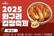 [경기뉴스원/경기뉴스1] | 구리시상권활성화재단은 오는 12월 6일 구리광장에서 ‘2025 와구리 김장축제’를 개최한다고 밝혔다. 이번 축제는 ‘경기도 상권 친화형 도시 조성 공모사업’ 선정으로 추진되는 ‘구리 윈터페스타’의 첫 번째 행사로, 지역 농산물 소비 촉진, 전통문화 체험, 이웃돕기 나눔 실천을 주요 가치로 삼아 시민 누구나 참여할 수 있는 겨울 축제로 마련됐다. 축제의 하이라이트인 김장 체험은 시민들이 직접 김치를 담가보는 프로그램으로 진행되며, 흑백요리사로 큰 인기를 얻고 있는 이모카세 김미령 한식 요리사의 지도로 구리시새마을회, 구리 도시공사, 무지개합창단 등 지역 자원봉사자들이 함께해 김장을 처음 접하는 시민들도 손쉽게 전통 김치를 완성할 수 있도록 도울 예정이다. 이날 담근 김치의 일부는 관내 홀로 어르신, 다문화가정 등 취약계층에 전달돼 시민이 직접 참여하는 연말 나눔 활동으로 따뜻한 의미를 더한다. 또한 축제장을 찾은 시민들을 위해 트로트 가수 태진아의 공연, 가야금 영재 조영재 & 아인스바움 윈드 챔버 연주 등 풍성한 무대 프로그램과 지역 소상공인 먹거리 부스, 다양한 체험