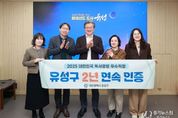 [경기뉴스원/경기뉴스1] | 대전 유성구가 ‘2025 대한민국 독서경영 우수 직장’ 인증을 받아 대전 자치구 중 최초로 2년 연속 인증을 획득했다고 6일 밝혔다. 독서경영 우수 직장 인증제는 문화체육관광부와 한국출판문화산업진흥원 주관으로, 직원의 독서 활동을 장려하고 독서를 통한 조직 문화 개선을 실천하는 기관·기업을 대상으로 심사를 통해 인증을 부여한다. 유성구는 ‘독서를 통한 지식 창출과 사회적 소통’이라는 독서경영 비전 아래 2023년부터 다양한 프로그램을 운영하고 있다. 올해는 직원이 추천 도서를 행정시스템 게시판에 소개하고 다음 추천자를 지목하는 독서 릴레이 캠페인(내 인생 한 권의 책)을 진행해 총 23권의 도서가 추천됐다. 또한, 바쁜 업무 환경으로 도서관을 방문하기 어려운 직원을 위해 8개 공공도서관의 책을 사무실로 배송하는 ‘북켓배송’ 서비스를 운영했으며, 352명의 직원이 658권을 전달받았다. 이와 함께 직원휴게실 내 작은도서관을 운영해 직원 기부로 도서를 확충하고, 자율적인 독서 문화를 조성하기 위한 공간으로 활용하고 있다. 정용래 유성구청장은 “유성의