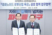 [경기뉴스원/경기뉴스1] | 대구광역시는 12월 30일 오후 2시 30분, 산격청사 제1대회의실에서 국내 로봇 시장 점유율 1위 기업인 HD현대로보틱스와 ‘휴머노이드 로봇 산업 육성’을 위한 업무협약(MOU)을 체결했다. 이번 협약은 대구시와 HD현대로보틱스가 협력해 지역경제의 핵심 성장 동력으로 육성 중인 휴머노이드 로봇 산업의 저변을 확대하고, 관련 생태계를 조성하는 중요한 첫걸음이다. 특히 양 기관은 대구 로봇산업의 질적 도약을 위해 ‘로봇 국가첨단전략산업 특화단지’ 지정에 역량을 집중하고, 대구를 대한민국 로봇 산업의 전초기지로 구축한다는 구상이다. 또한, 대구시는 HD현대로보틱스 대구 본사 공장의 제조 혁신을 위한 ‘AI 팩토리 선도프로젝트’를 추진하고, 로봇 실증 인프라 확충을 위한 국비 예산 확보 등 정책적 지원을 강화할 방침이다. HD현대로보틱스는 글로벌 로봇 시장 수요 증가에 선제적으로 대응하기 위해 현재 연간 8,000대 수준인 생산 능력을 20,000대 규모로 2.5배 확대할 계획이다. 이를 위해 제조 공정에 AI 기술을 본격 도입하고, 자동화율을 기존 50%에서 80%까지 끌어