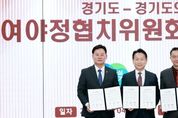 [경기뉴스원/경기뉴스1] | 경기도의회 국민의힘은 4일, 도의회 예담채에서 열린 ‘제1차 도의회-도 여야정협치위원회 전체회의’에서 ‘2026년도 본예산 협치예산’ 및 ‘특별조정교부금 제도 개선’에 합의했다고 밝혔다. 이날 행사에는 도의회에서 백현종 국민의힘 대표의원과 김진경 의장, 최종현 더불어민주당 대표의원을 비롯해 양당 총괄수석부대표와 수석정책위원장 및 수석대변인이 참석했다. 경기도에서는 김동연 도지사와 고영인 경제부지사를 포함해 협치수석, 기획조정실장, 균형발전기획실장 등이 자리했다. 이번 전체회의는 지난 8월 출범한 도의회-도 여야정협치위원회 협약식과 현판식에 이은 첫 번째 만남이다. 행사는 경과보고 및 ▲도-도의회 2026년 본예산 협치예산 합의문 ▲도-도의회 특별조정교부금 제도 개선 합의문 내용에 관한 설명이 이어진 후 양당 대표의원과 경제부지사가 합의문에 서명하는 것으로 진행됐다. 도-도의회 2026년 본예산 협치예산 합의문의 골자는 ▲도민 생활 안정과 지역경제 회복 추진 ▲따뜻한 복지 환경 조성 ▲도민 이동권 확대 ▲지속 가능한 성장 기반 마련 ▲재난 및 기후 위기 선제적 대응이다.
