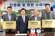 [경기뉴스원/경기뉴스1] | 진주시는 10일 시청 기업인의 방에서 올해 모범장수기업으로 선정된 세일공업(주), ㈜한일식품, 대신정공(주)에 인증패와 현판을 수여했다. 이날 행사는 지난해에 이어 두 번째로 열렸으며, 끊임없는 기술혁신과 지역과의 상생을 실천해 온 향토기업들을 ‘모범장수기업’으로 선정해 시상하는 자리로, 기업들의 공로를 치하하고 지역 경제에 기여한 노고를 격려하는 뜻깊은 시간이 됐다. 40여 년간 농기계와 자동차용 기어 및 동력전달장치를 생산하며 지역 제조업의 기반을 다져온 세일공업㈜는 최근 반도체 생산라인용 진공펌프 부품을 개발·납품하며 미래 산업 분야로 사업 영역을 넓히고 있다. 또한 2024년에는 재정 확충에 기여한 공로로 진주시 성실납세자로 선정되는 등 사회적 책임을 다하고 있으며, 직원 학자금 지원 등 복지 향상에도 앞장서는 대표적인 향토기업이다. 단무지와 절임식품을 주력으로 HACCP 인증 시설을 갖춘 ㈜한일식품은 위생적이고 체계적인 품질 관리로 소비자의 신뢰를 얻어왔으며, 그 결과 매출액 증대로 이어졌다. 또한 가족친화인증 기업으로 근로자의 일·생활 균형을 지원